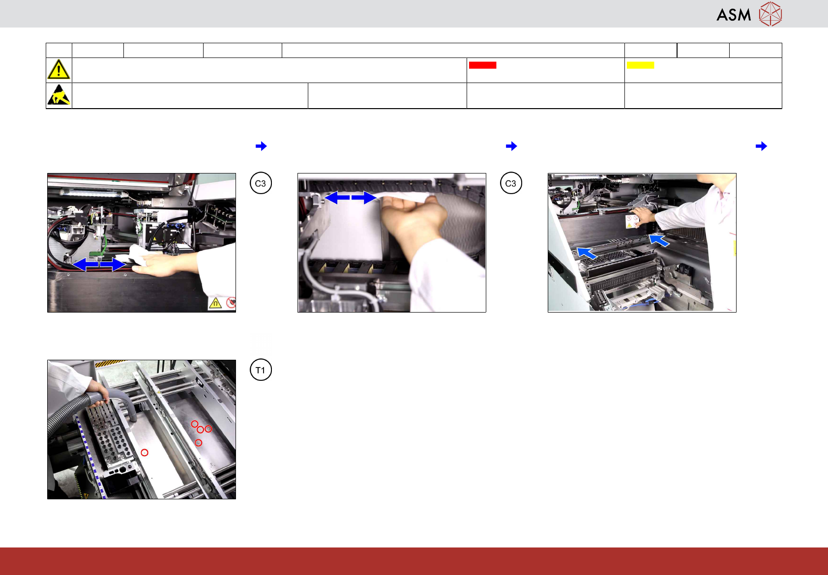 1 Clean the gantry cables of the X-Axis. 2 Clean the gantry cables of the Y-Axis. 3 Move all gantries to the end limit at loca-