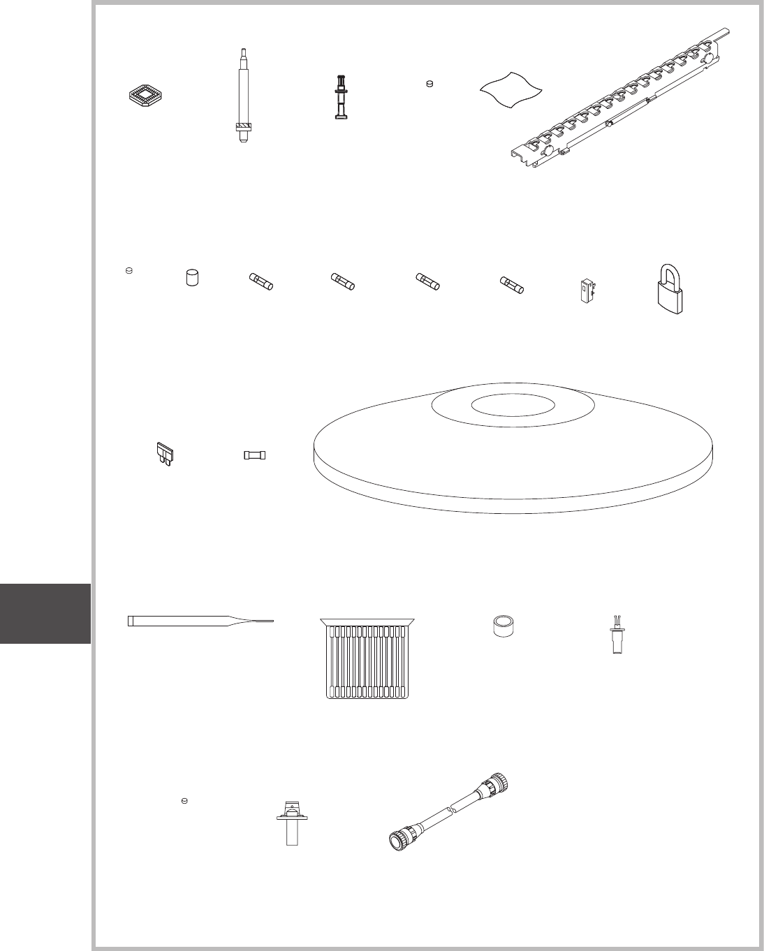 CONTENTS Fig. O1 標準付属品、選択部品 ST ANDARD ACCESSORIES, OPTIONAL P AR TS Fig. O1-1 標準付属品 Standard Accessories Fig. O1-2 フィーダセットケーブル、ノズルストッカ交換部 Feeder Set Cable, Nozzle Stocker Changing Section Fig. O1-3 選択部品(高速ノズル) Optional P…