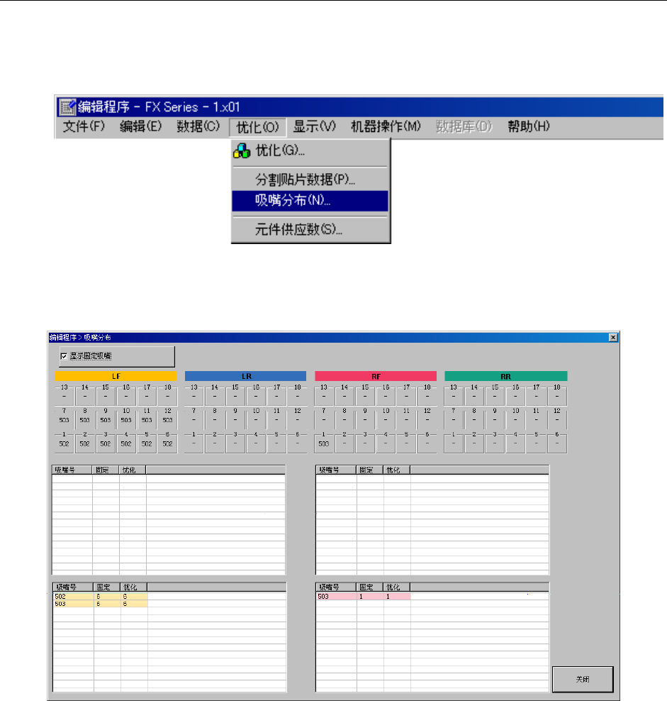 执行优化后,可安排该机种可使用的定心方式、吸嘴编号。