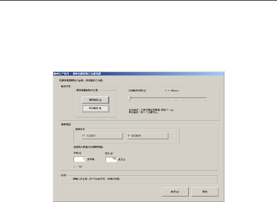 以一定的间隔,依次用摄像机捕获贴片位置。按以下的“自动输送间隔”设定的时间