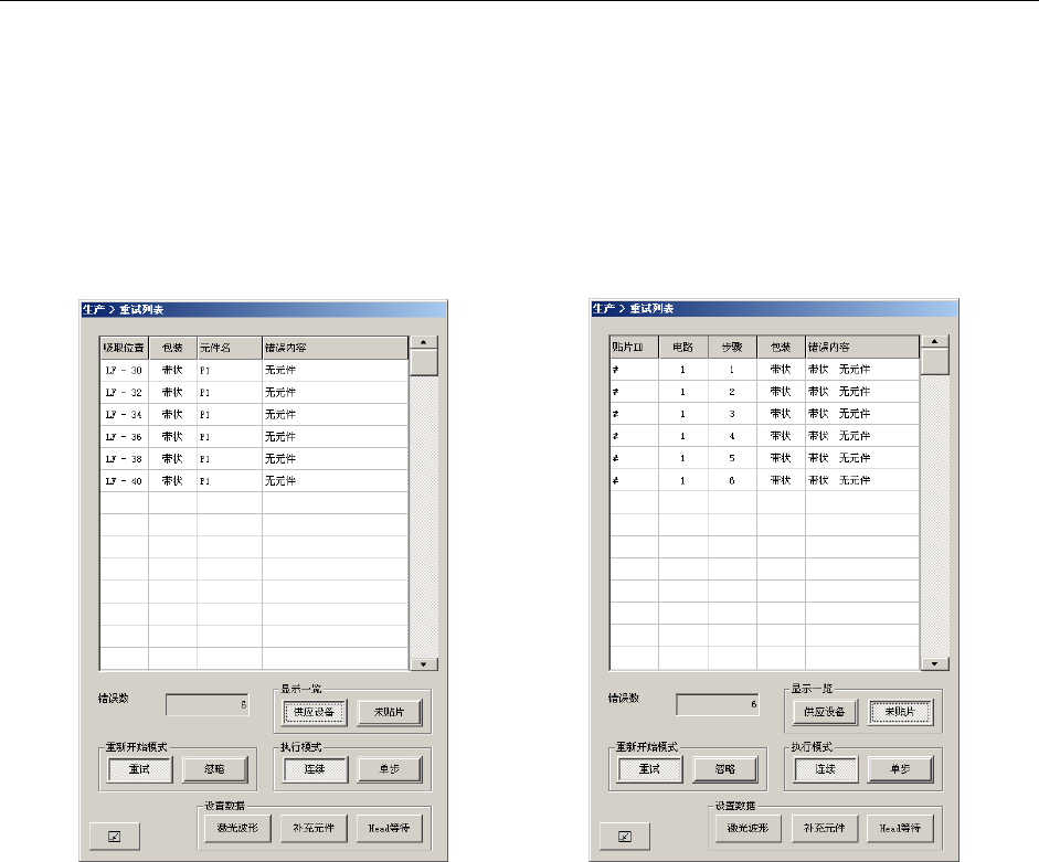图 3-4-4-1 重试列表(供应装置)对话框 图 3-4-4-2 重试列表(未贴片)对话框