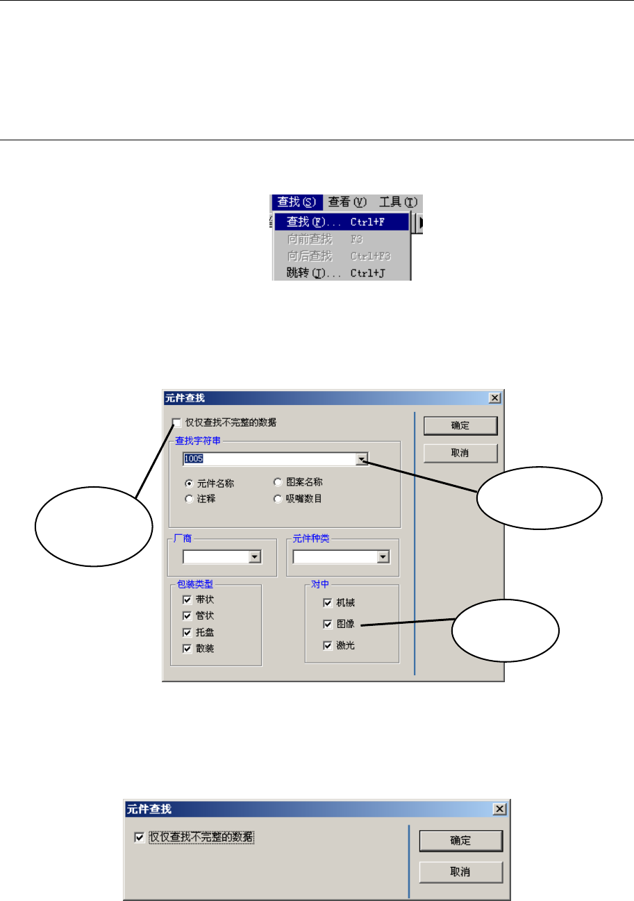 ④查找未完成的元件数据时,请单击“仅仅查找不完整的数据”。显示如下画面后,再单击