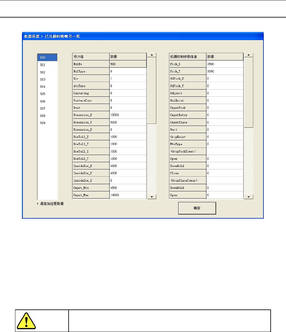 可在“已注册吸嘴编号一览(图4-4-3-1-1)”中确认已追加的吸嘴号。