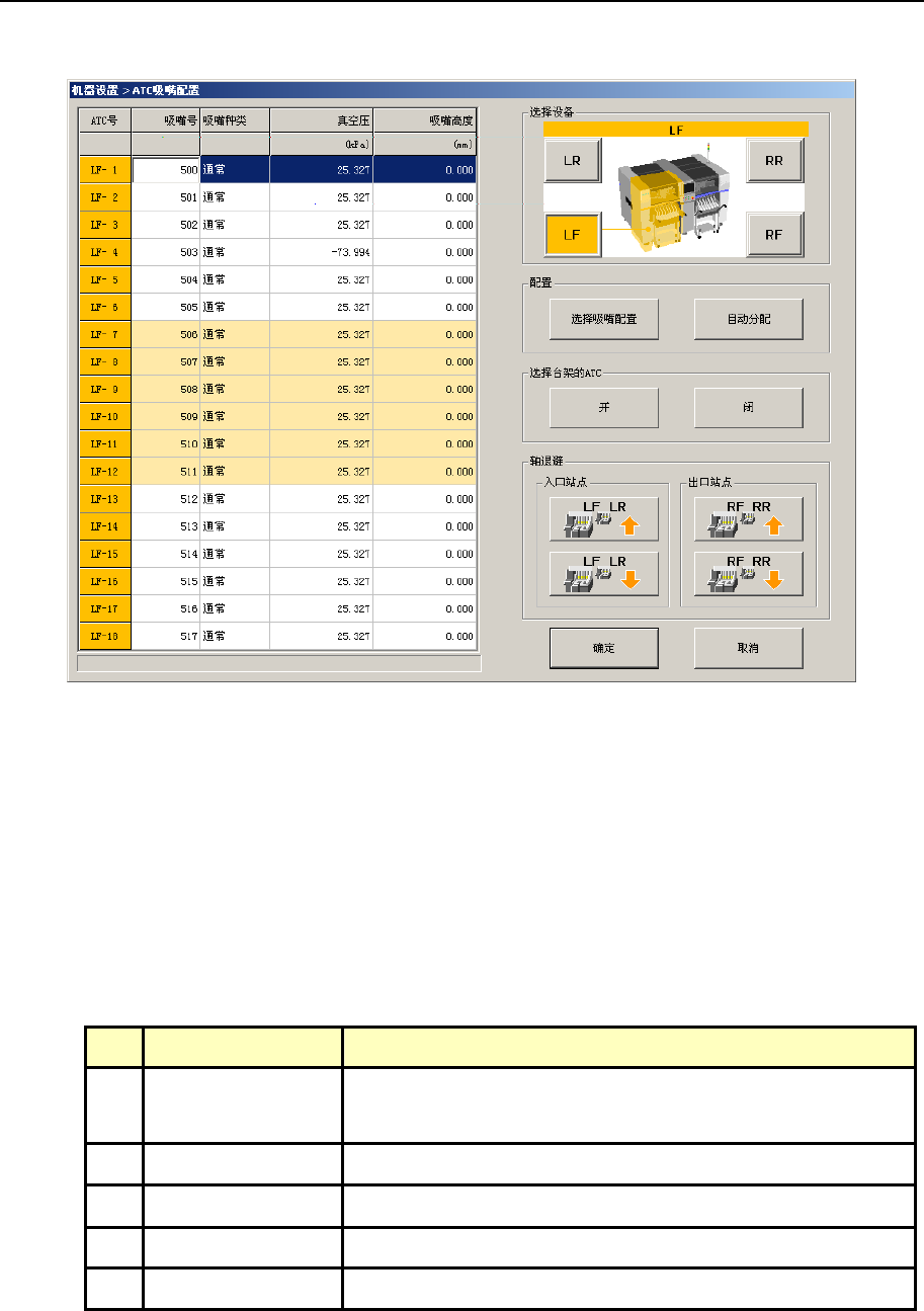 选择“ATC 吸嘴分配”后,会显示如下画面。