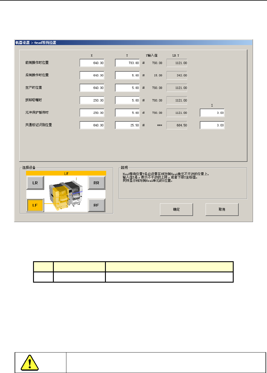 选择 Head 等待位置后,可显示如下 Head 等待位置设置画面。