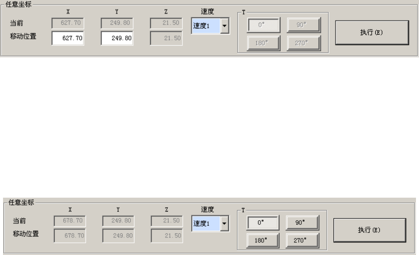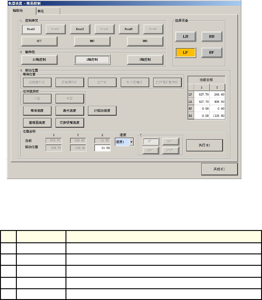 选择要控制的轴的种类“XY 轴控制”“Z 轴控制”按下“执行”按钮,即可把轴移至任意的