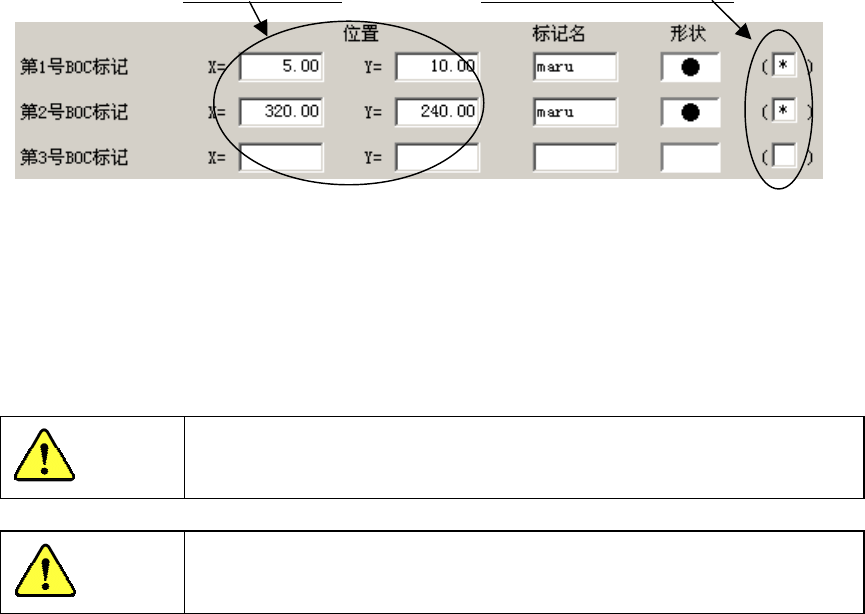 输入由基板位置基准(原点)到各BOC标记的中心位置的尺寸,设置标记名并进行标记形状的