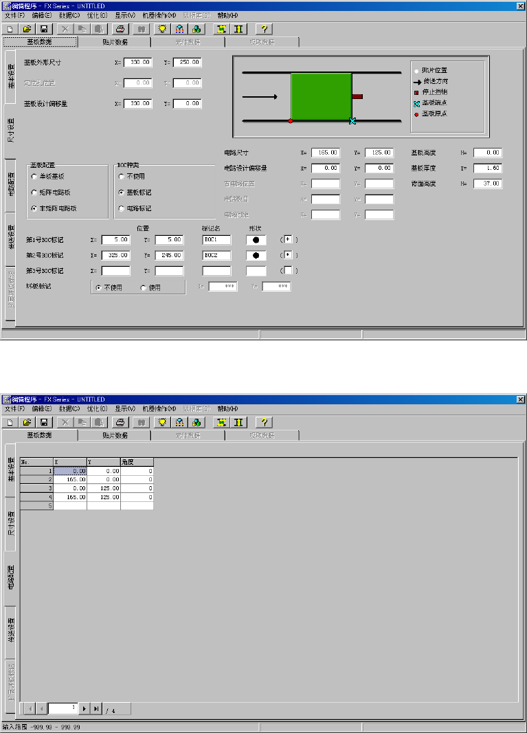 操作手册 I I Rev00 2-26 1) 基板外形尺寸 输入包括所有电路在内的基板外形尺寸。 2) 定位孔位置 与单板基板相同,输入从基板位置基准(原点)来看的基准销位置。 3) 基板设计偏移量 与单板基板相同,输入从基板位置基准(原点)来看的基板设计端点的位置。 4) 基板配置 选择“非矩阵电路板” 。 5) BOC 种类 请按照与矩阵电路板相同的方法输入。 6) 电路尺寸 输入电路的外形尺寸(包括所有贴片坐标在内的尺寸)。 7)…