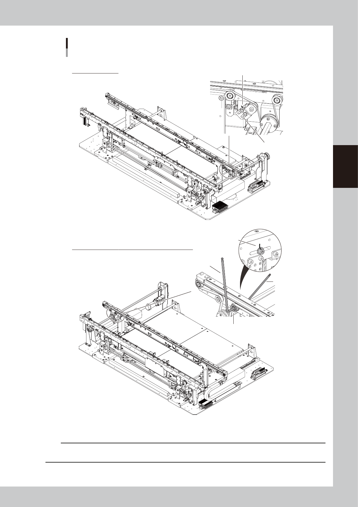 3-47 3 Periodic maintenance items YSM20 Single-lane YSM20 Single-lane (for transferring heavy boards) * This image is right flow type. Regarding YSM20W Single-lane, the tensioner (pulley) locates at the downstream side o…
