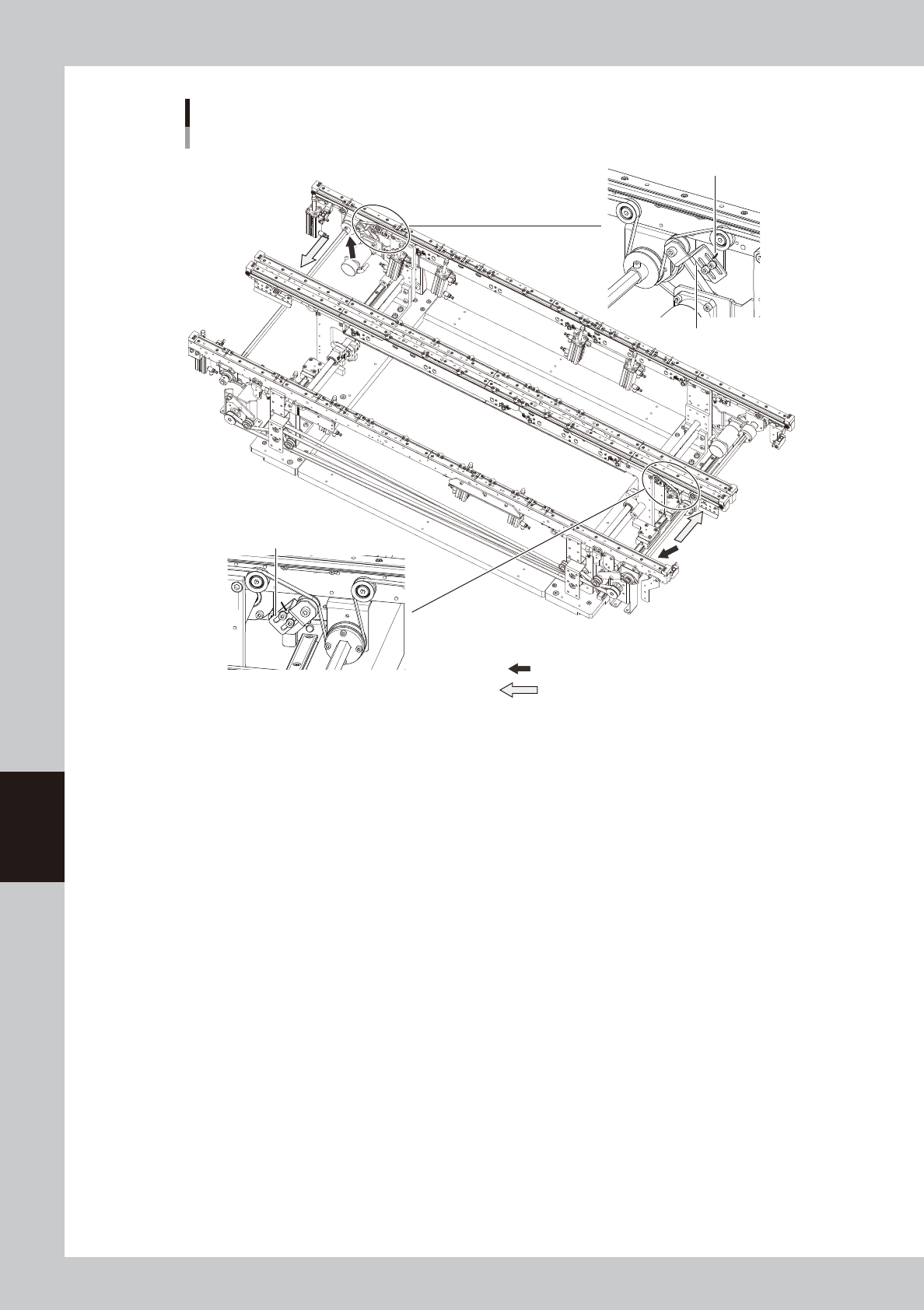 6-11 6 How to replace consumable parts 4 L oosen the belt. 1. Before loosening the conveyor belt, put a marking at the current position of pulley bracket (YSM20W Single-lane type: pulley) with a permanent marker . 2. Use…