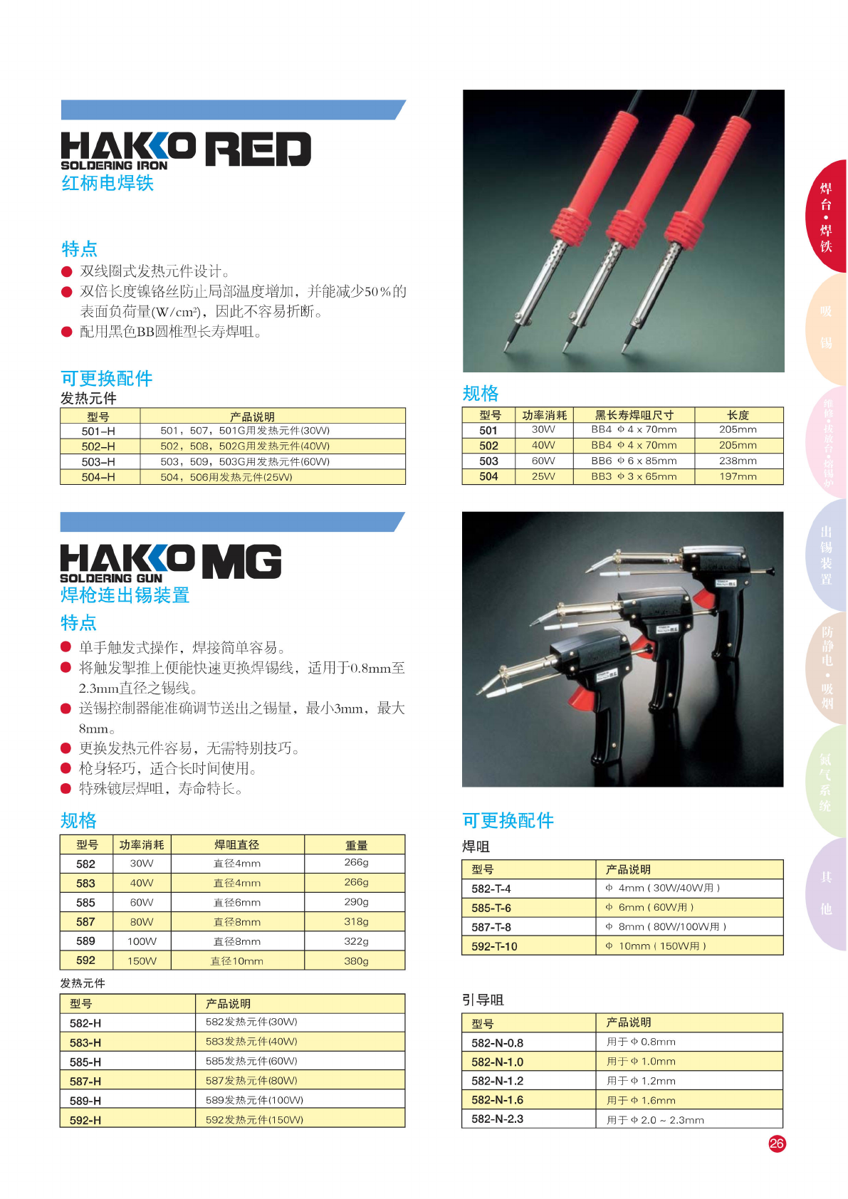 HAKCOFR-400^ TOOL 「■— 局功率 吸锡枪 特点 • 采用超 高功率 300W 加热 设计。 • 适用 于处理 大型部 件如屏 蔽罩、 变压 器等。 • 特设 ACF(Anti-Clogging) 功能, 减少焊 锡堵塞 情况。 规格 手柄 主机 适 用于大 型部件 适用于 大型部 件的两 款吸咀 新品 变 压器、 线 圈等大 型部件 3 倍 金属端 子座、 屏蔽罩 旧品 新品 N60-09 大容量 过滤管 为了 吸取大…