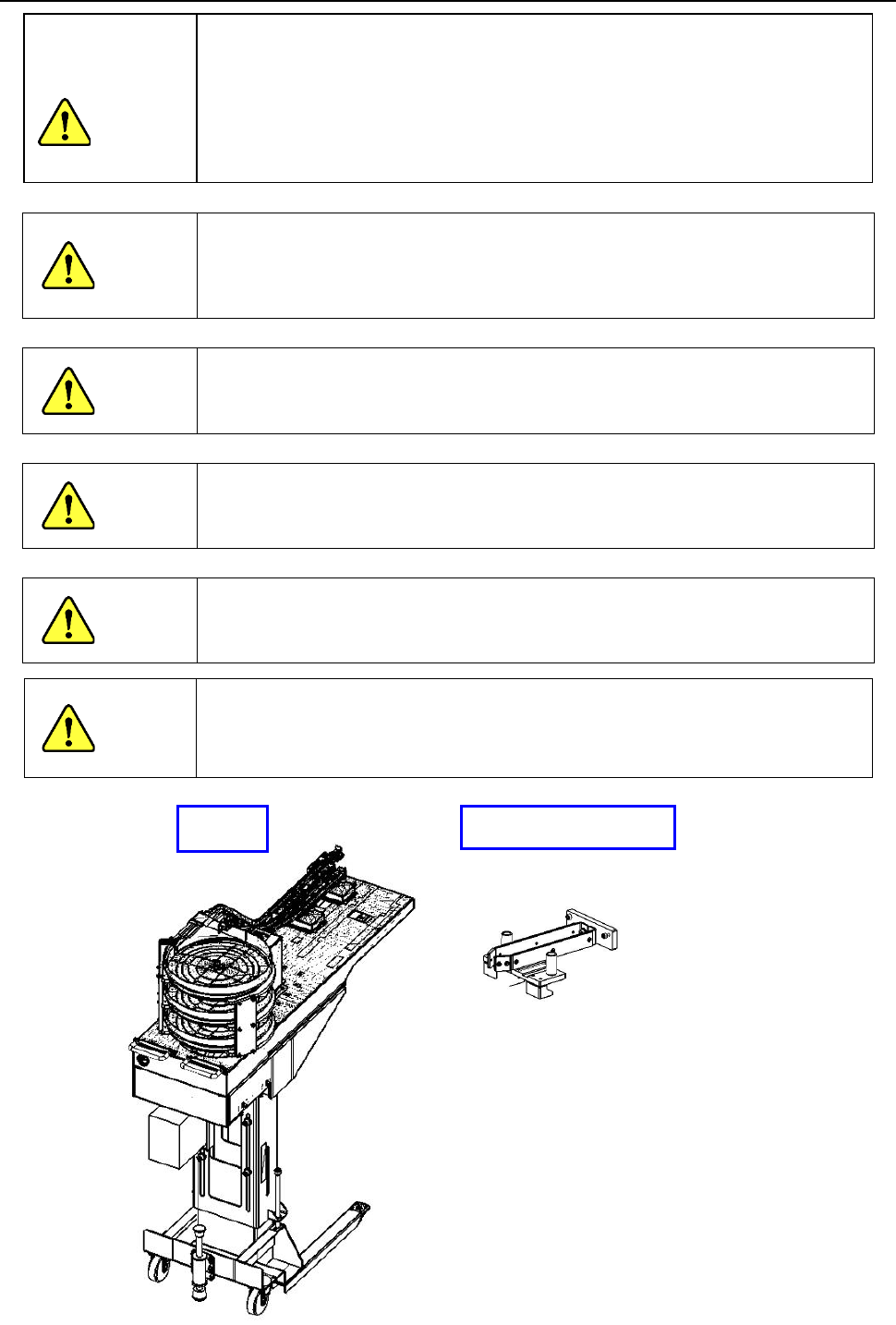 第 2 部 功能详解篇 第 13 章 选项组件 13 - 19 13 -1- 7 MBF -L (圆型供料器 3L ) 在 XY 轴或 H ead 正在动作时进行更 换,圆型供料 器可能会接触到 动作中的元 件,伤及人身或 损坏装置。 XY 轴和 Head 正在动作时,请绝 对不要更换圆 型供料器。 请务必打开安全 护罩后再更换。 有的供料器 安装时安全罩和 供料器之间会 出现开口部。为 防止人身事故 ,请 勿将手伸进开口 部。 注意 …