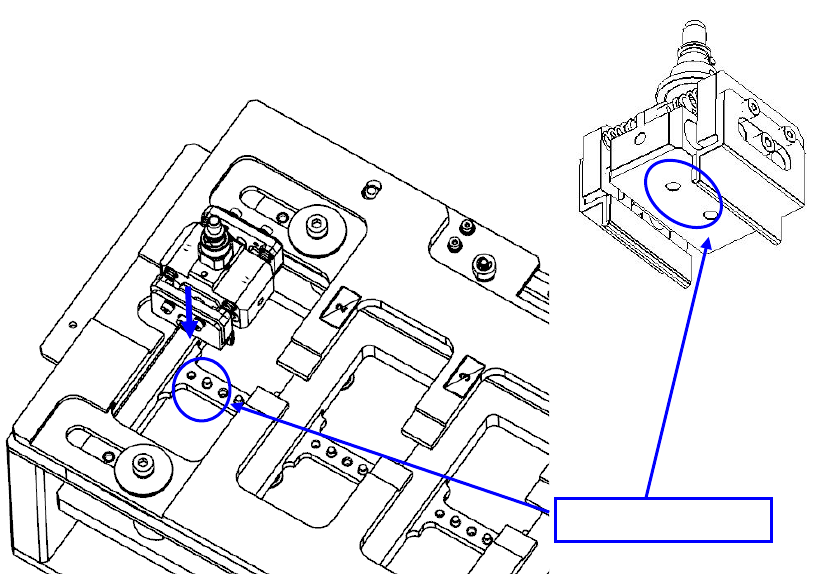 在 R-ATC 上安装卡盘吸嘴时,将卡盘吸嘴基座下面的开孔与 R-ATC 的销对准后安装。卡盘吸嘴