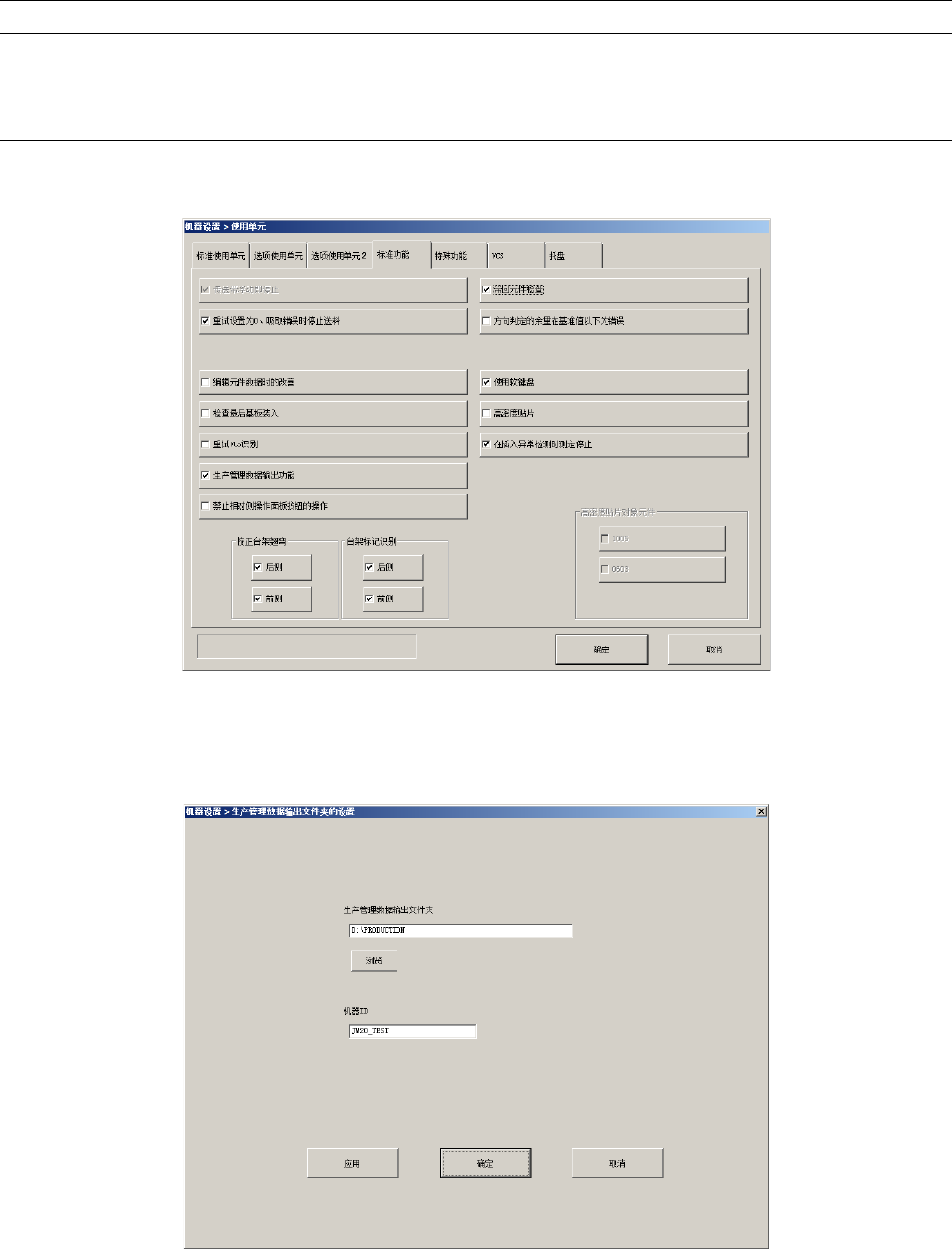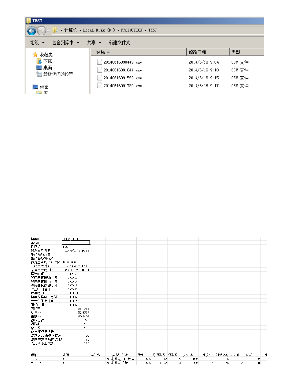 第 2 部 功能详解篇 第 13 章 选项组件 13 - 67 13 - 10 - 3 生产管理数据文件 每生产 1 片基板即在上述设定 的输出文件 夹中创建与 生产程序 同名的文 件夹并保存 文件 。 1. 文件名 YYYYM MDDhhm mss.CVS YYYY :年 MM :月 DD :日 hh :时 mm :分 ss :秒 2. 格式 以 CVS 格式 (逗号 间隔)输出文 件。 3. 输出示例
