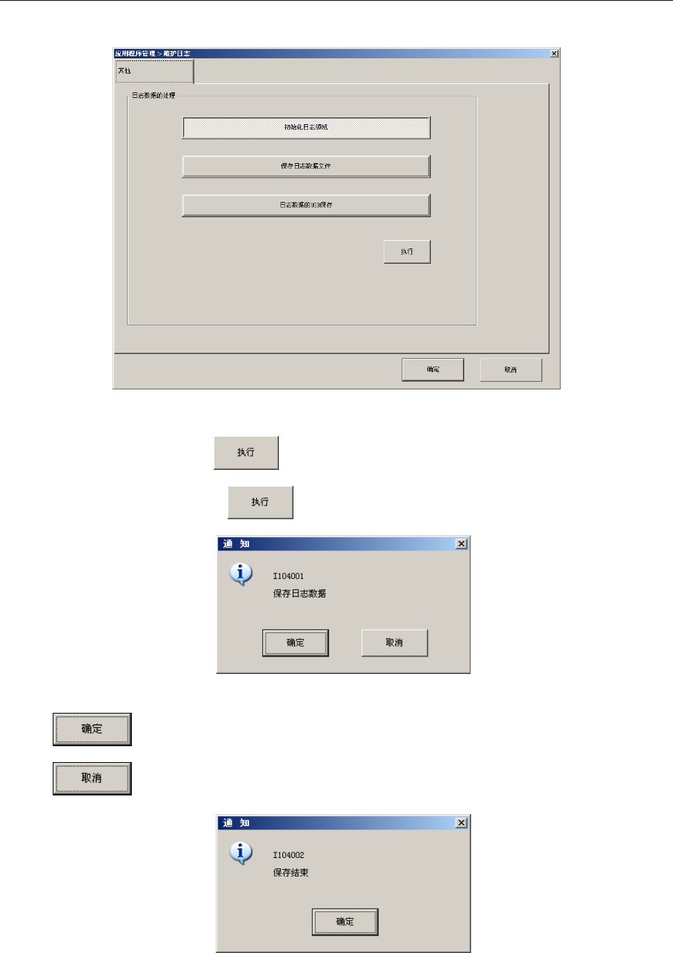 第 2 部 功能详解篇 第 14 章 程序补充 14 - 23 14 - 7 维护日志 为了保证在故障 时能够进行解析 ,从而记录装 置的动作,将其 结果作为文件 进行保存的功能 。 如果在发生了问 题时,请按照下 述操作,取得 日志(发生错误 的履历)。 若继续执行其他 动作, 将会覆盖日志 文件导致信息 丢失, 所以, 在发生问题时, 请马上取得当时的 日志。 14 -7- 1 取得随机日志 取得执行程序的 日志。 取得日志: 保存…