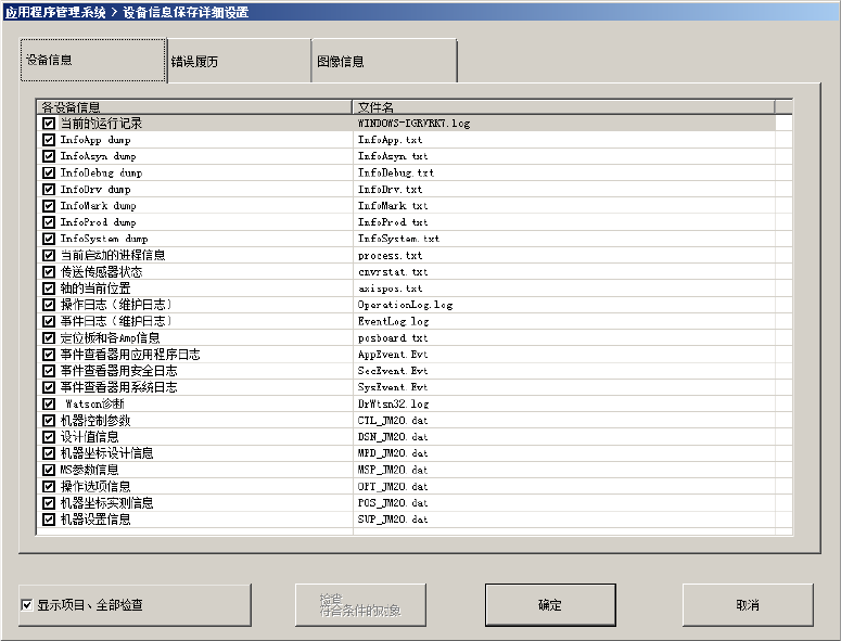对设备信息的取得进行设置时,如「设备信息」带有选中号,将取得以下的设备信息,进行以下文件