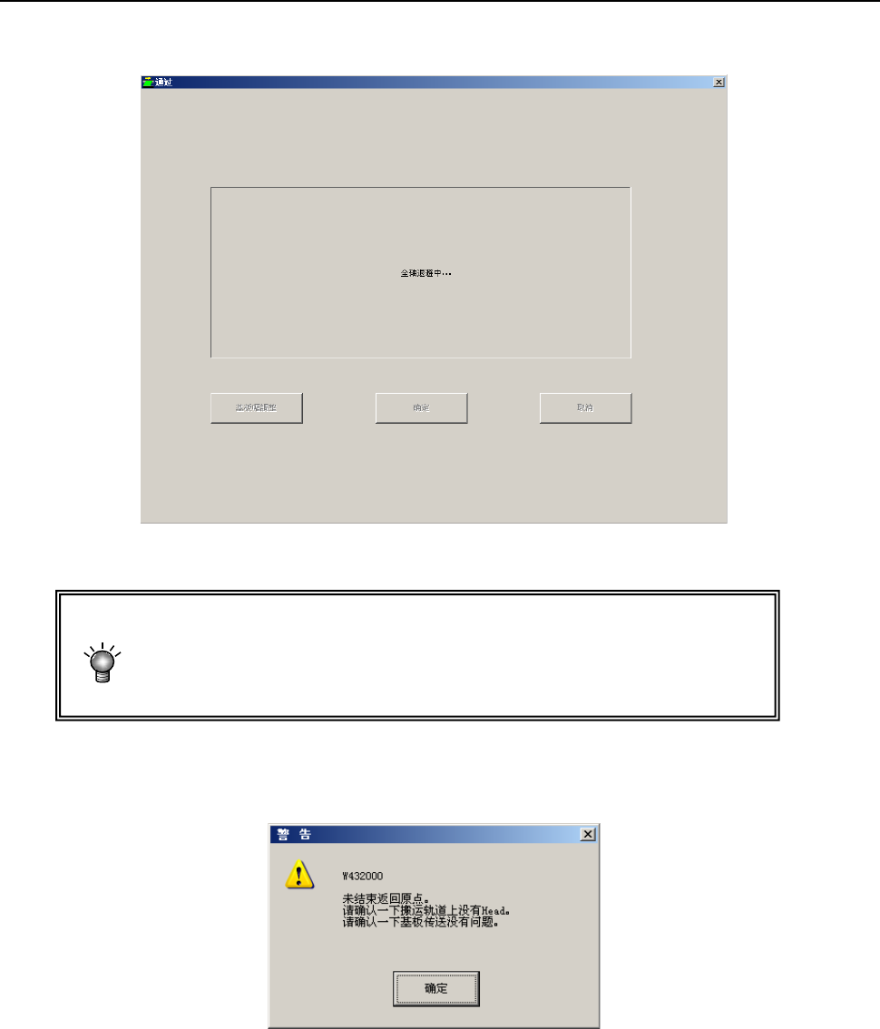 注1) 启动时若未完成返回原点时,会显示下列确认信息。