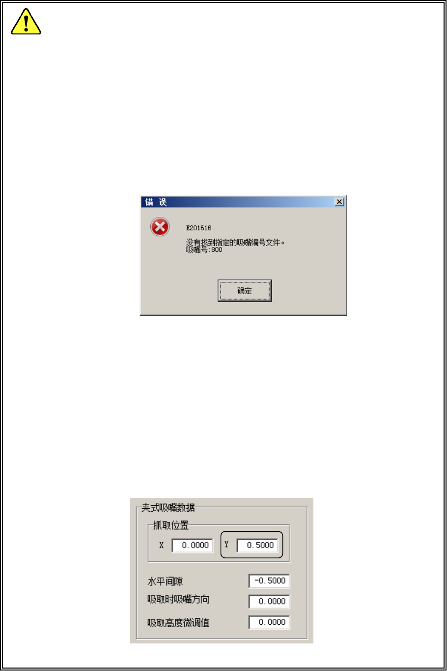 生产程序中存在吸嘴文件,所设定的吸嘴为夹式吸嘴时,夹式吸嘴数据抓取位置的数值