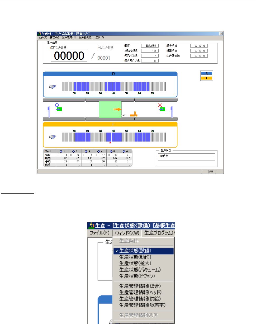 从窗口菜单的[设备]、[动作] 、[扩充]、[真空]、[生产状态] 选择一项生产状态,即可显示指定的生产设