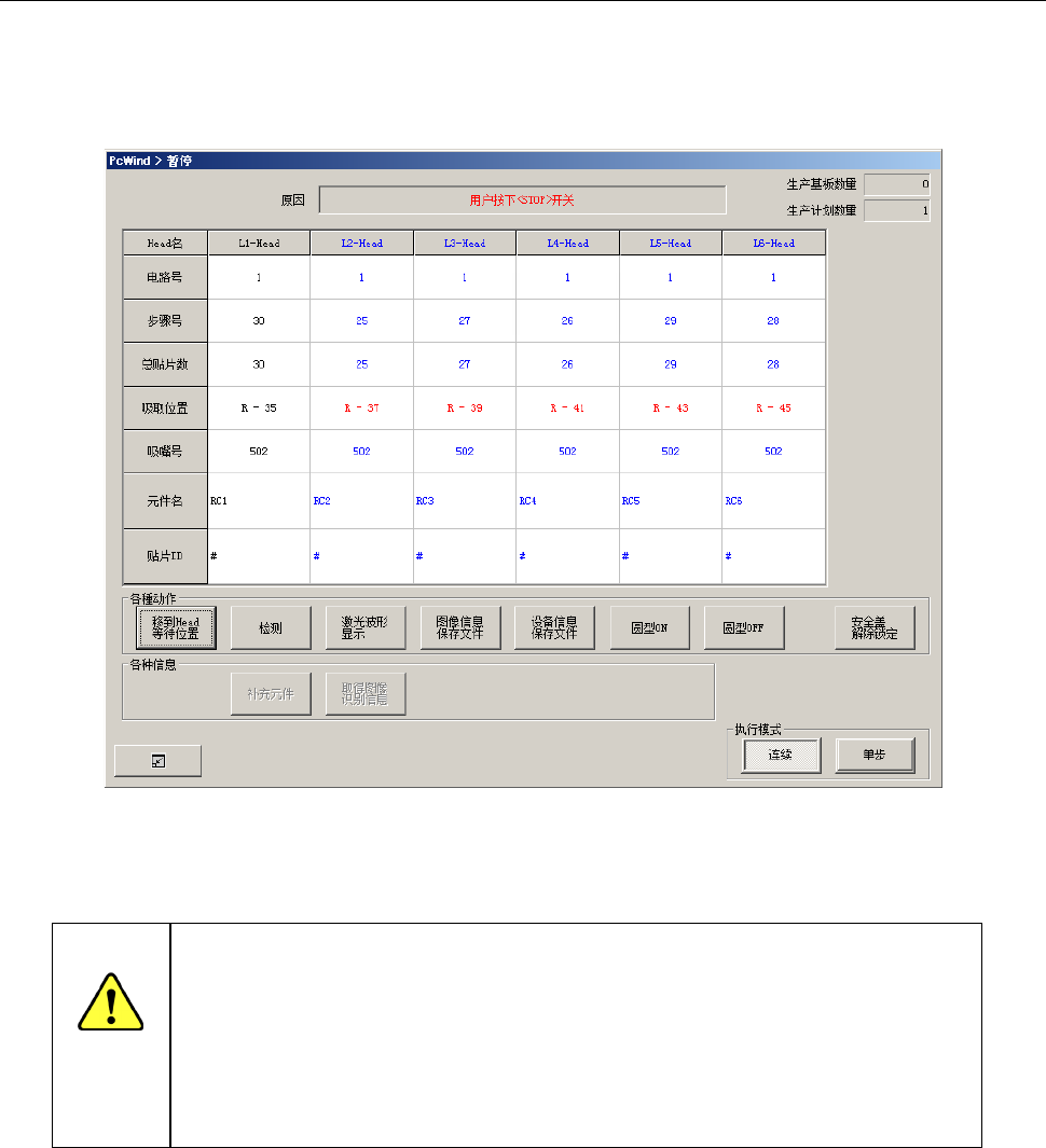 (2)在连续生产中暂停时,按下画面上的[Head 等待]键,