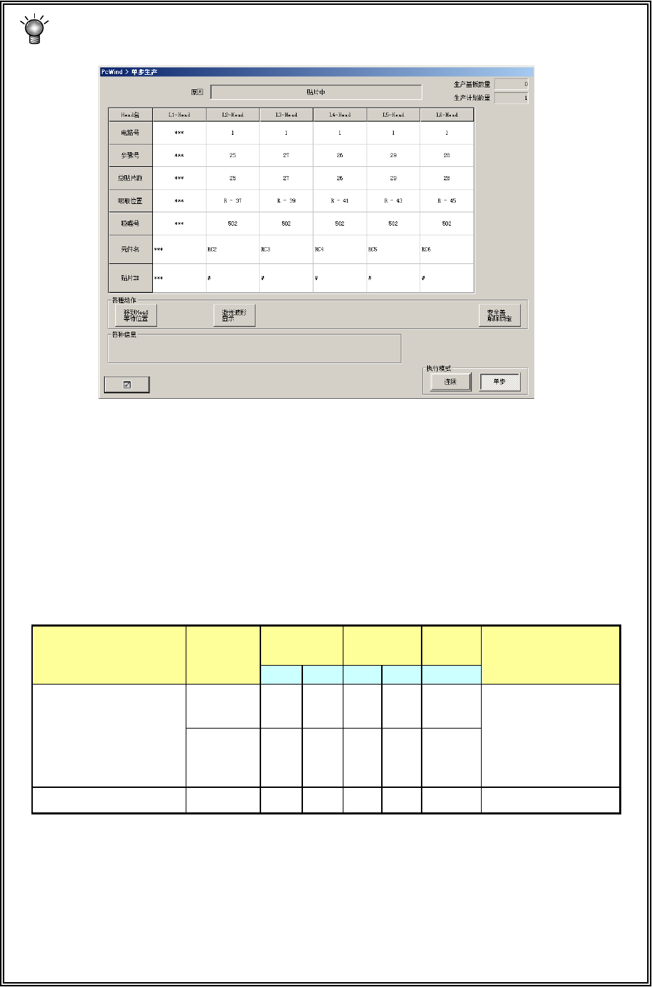 (3)在“单步生产”中停止,或在连续生产中暂停时,按下画面上的[连续]/[单步]按钮,可切换