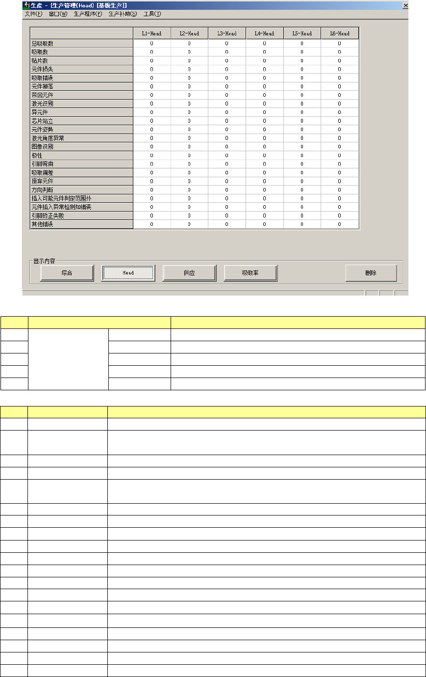显示每 1 个 Head 的生产管理信息。