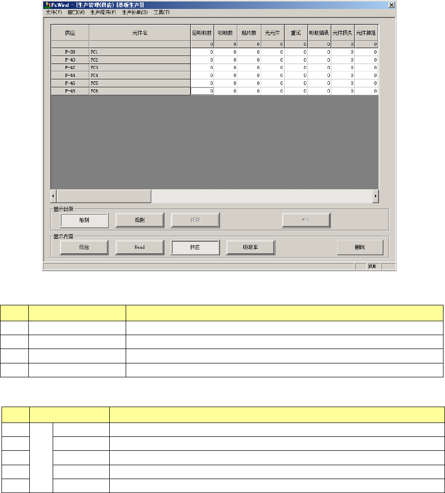 显示各供应装置的生产管理信息。