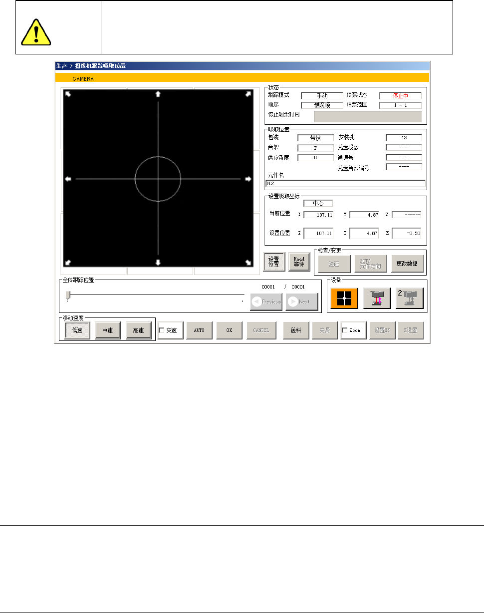按[确定]按钮开始吸取位置的校正后,显示吸取位置摄像机跟踪画面。