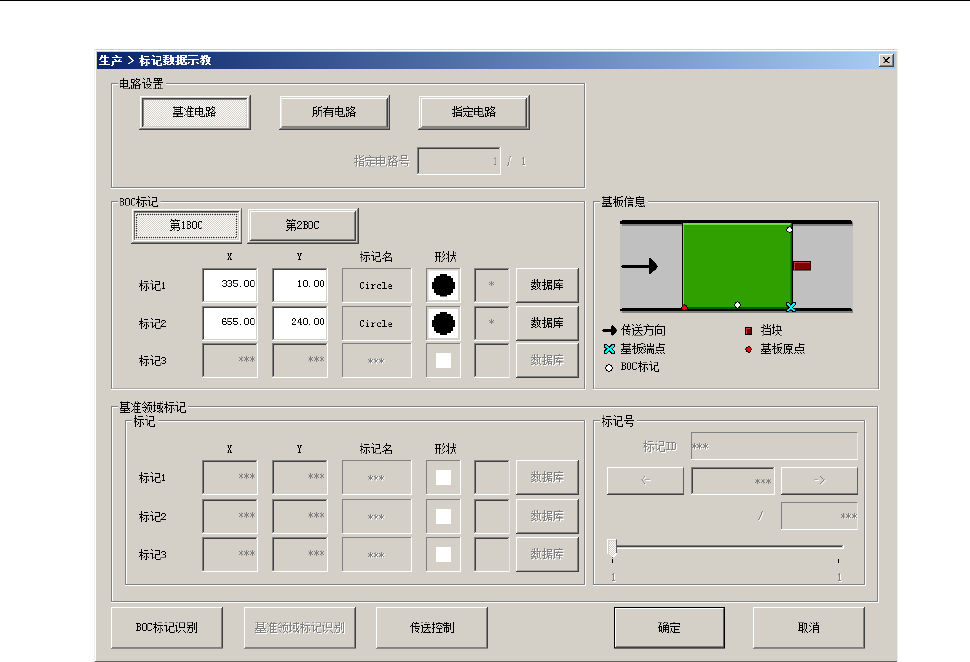 使用长尺寸基板选项时,通过切换「第 1BOC」「 第 2BOC」按钮,可切换编辑的 BOC 标记。