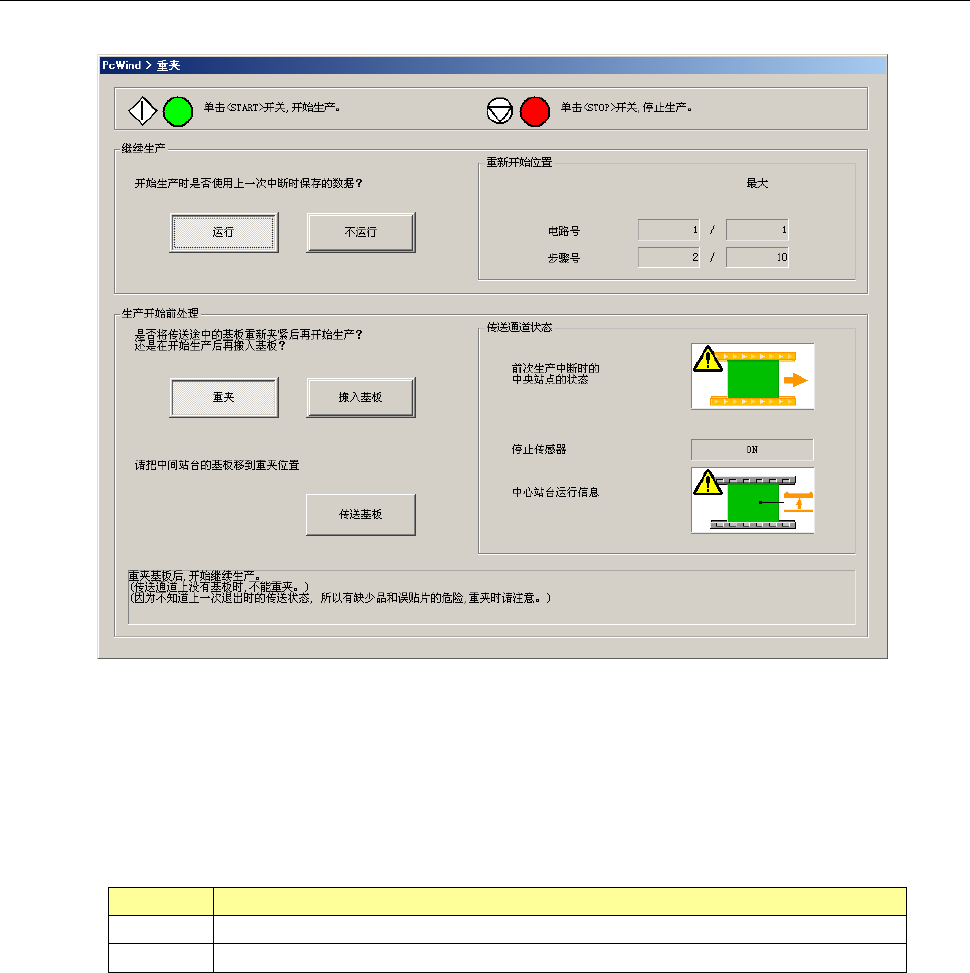 开始继续生产前,传送通道上有基板时,即显示基板重夹对话框。