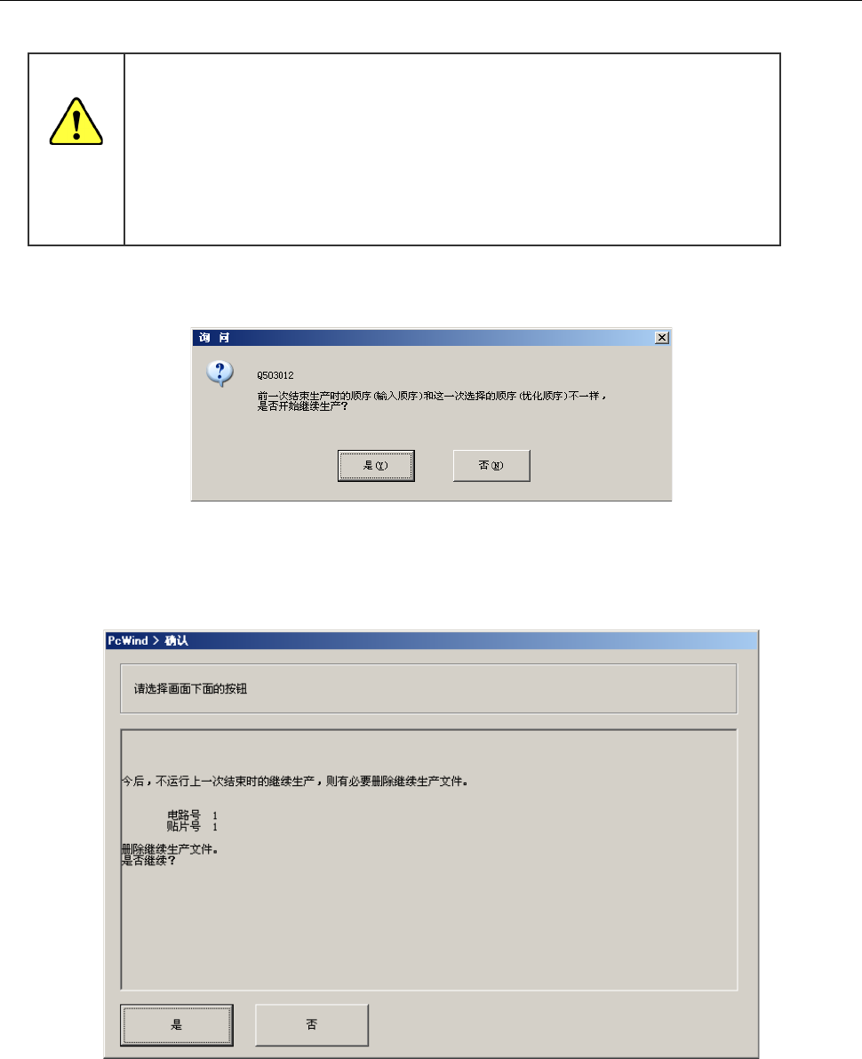 (2) 在可继续生产的状态下,选择不继续生产时,会显示提示,要求确认是否删除继续生产文件。