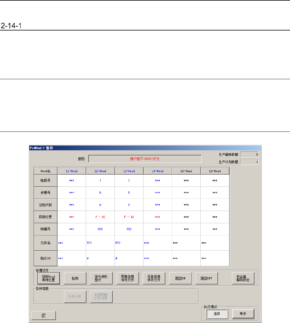 第 1 部 基本篇 第 2 章 生产 2- 157 按 <ST ART> 开 关后,摄像机吸 取跟踪的自动 输送模式会继续 进行。 在最后的吸取位 置按 <START > 开关 时,会显示开 始生产动作的 确认对话框。 按 <ST OP > 开关则在显示 确认中断的对话 框后中止摄像机 吸取跟踪。 但即使按了 <STO P> 开关,吸嘴交换将照 常进行, XY 轴和吸嘴 He ad…