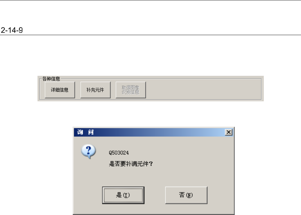 按[是]按钮后,执行补充元件。补充对象为带式,管式,散装、径向、圆型、轴向供料器供应的元件。