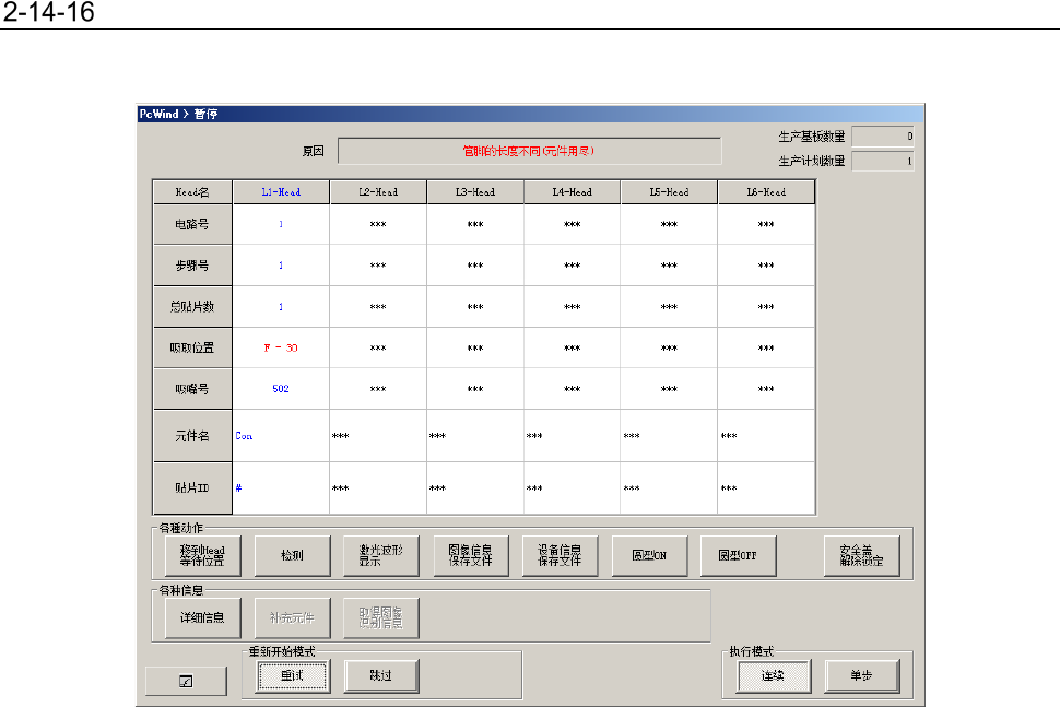 勾选了操作选项 – 生产 – 暂停的「发生错误时暂停」时,在生产中发生管脚长度不同(元件用尽)时,
