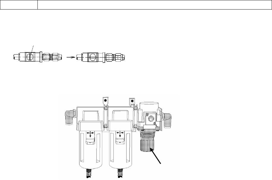 2) 向下拉「调节器旋钮②」,旋转旋钮,把使用的空气压力调整为 0.5MPa。