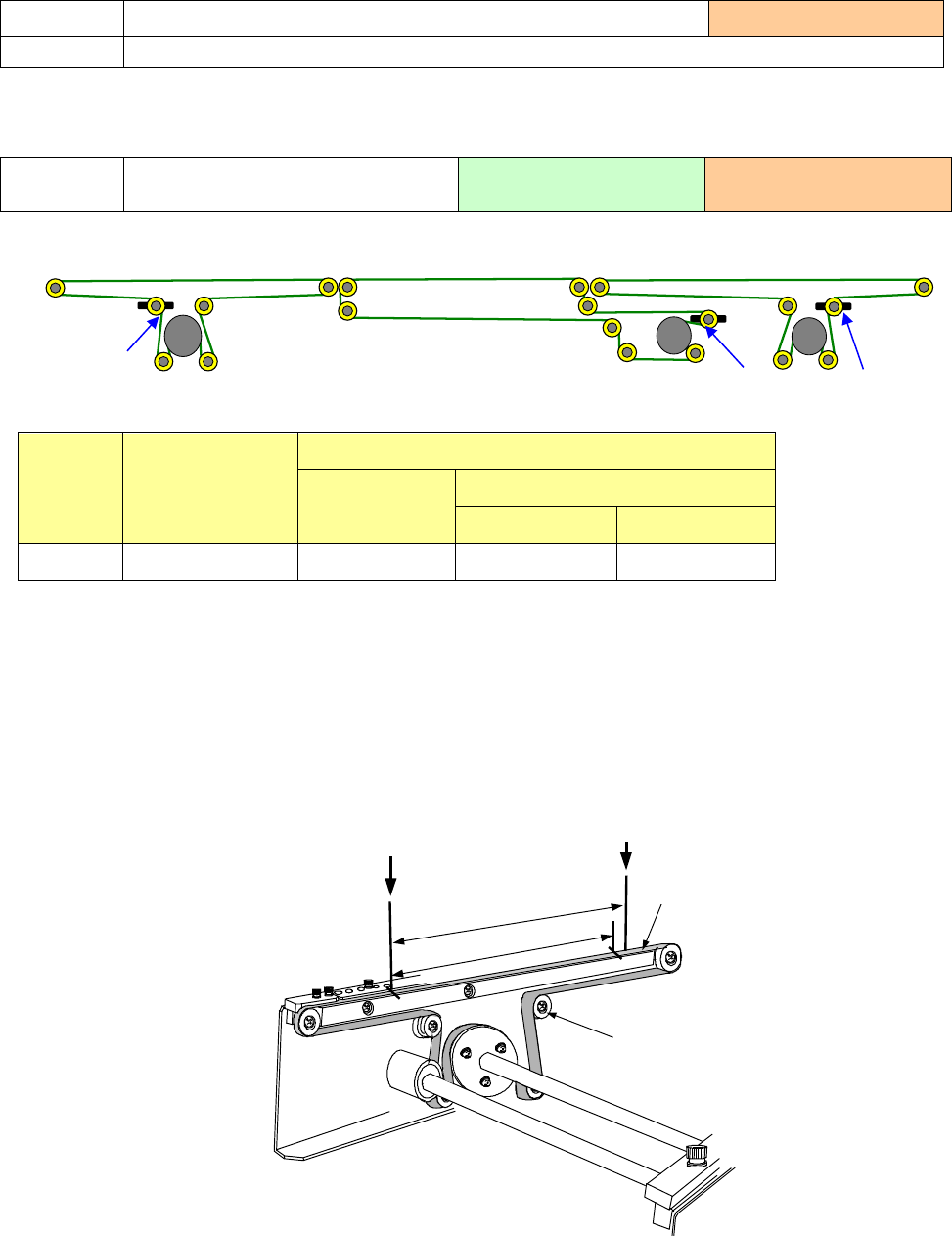 ② 按照与1)逆向步骤,转动「A部」的「传送滑轮」,撑紧传送带张力,在2处标记的间距达到202mm