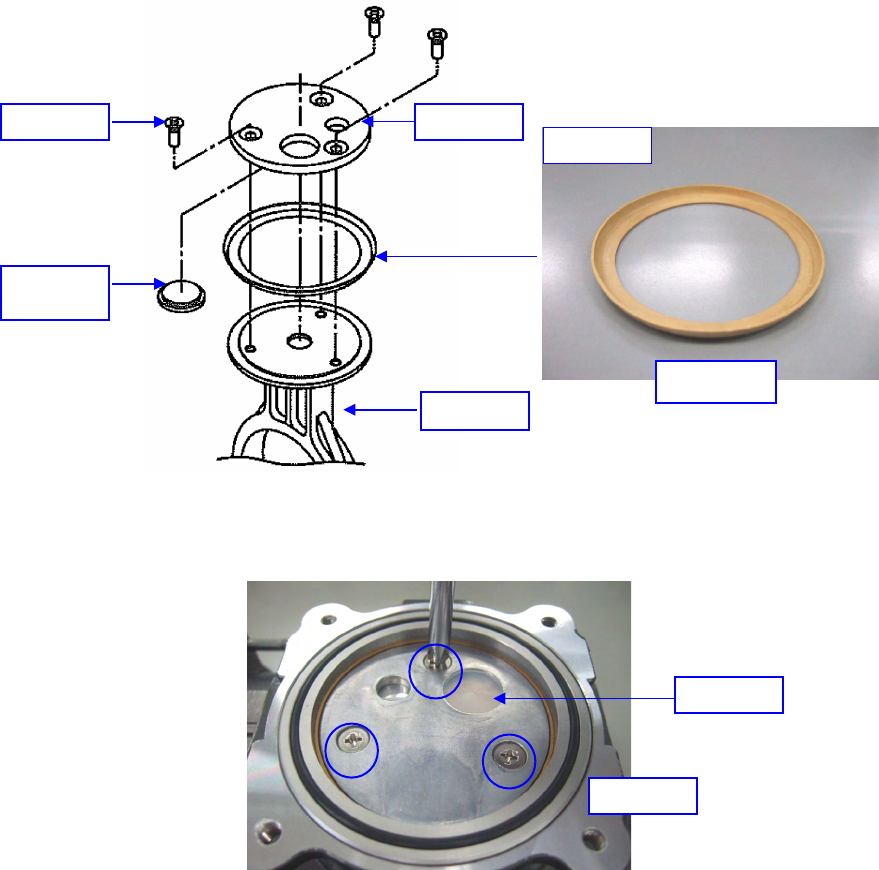 ) 安装了新防止吸气阀碰触胶垫的固定器放置在碗形密封垫圈之上,使用涂抹了螺钉松动防止剂