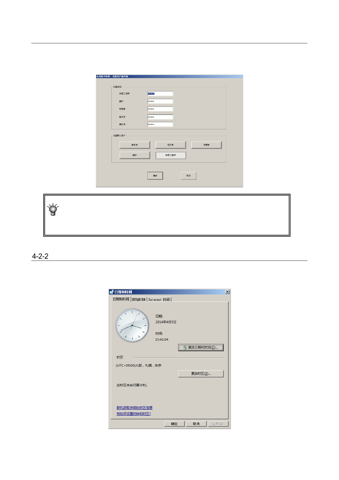 本设备根据作业人员的操作熟练程度,设置了用户级别,对操作范围进行了限制。