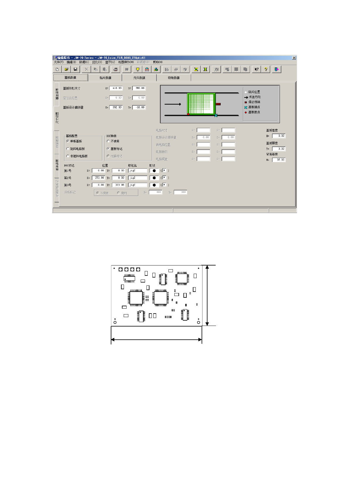 在生产程序中,用坐标来表示基板上的元件及标记的位置。