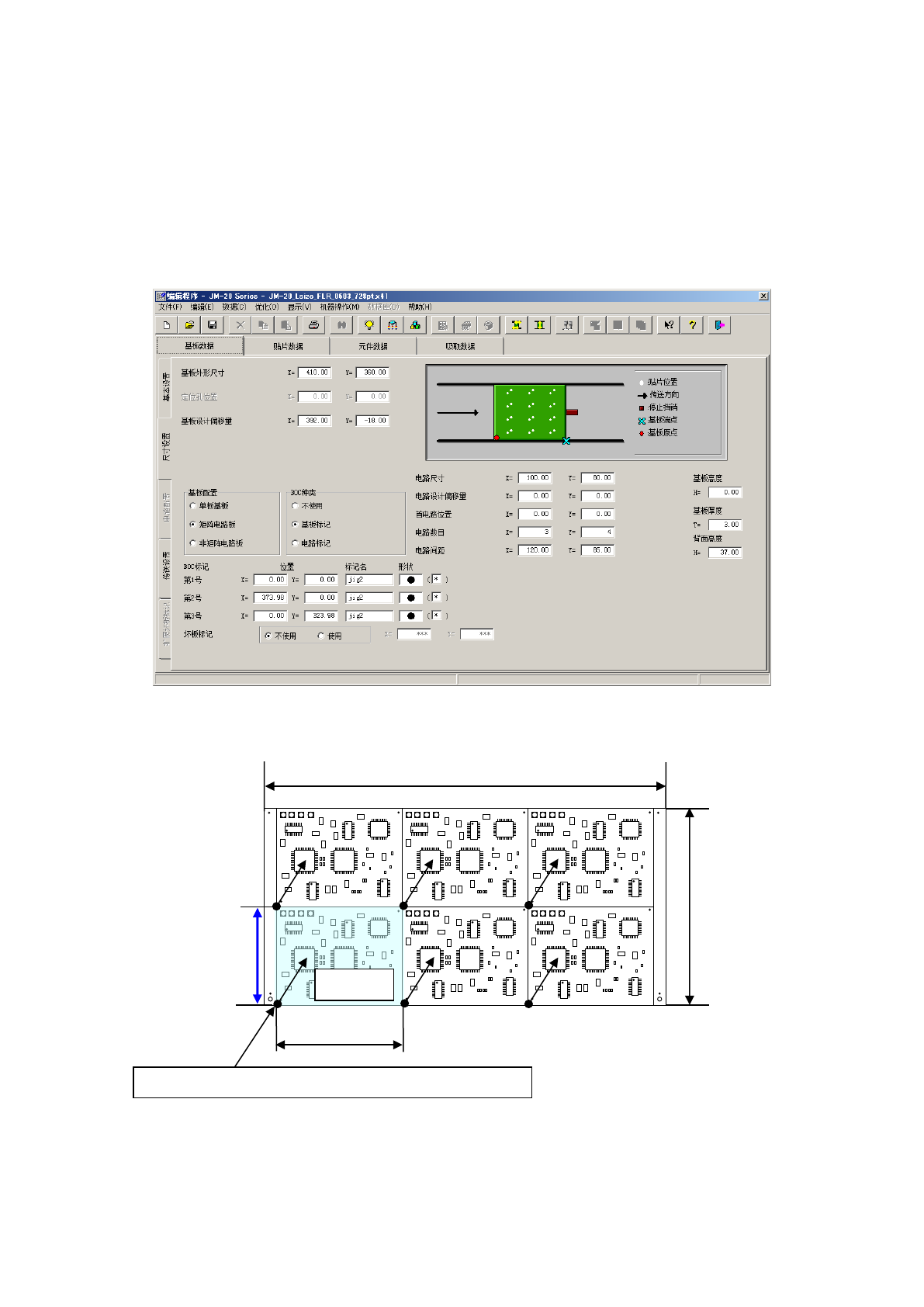 ② 设置基板位置基准和电路原点,输入电路数和电路间距的信息。