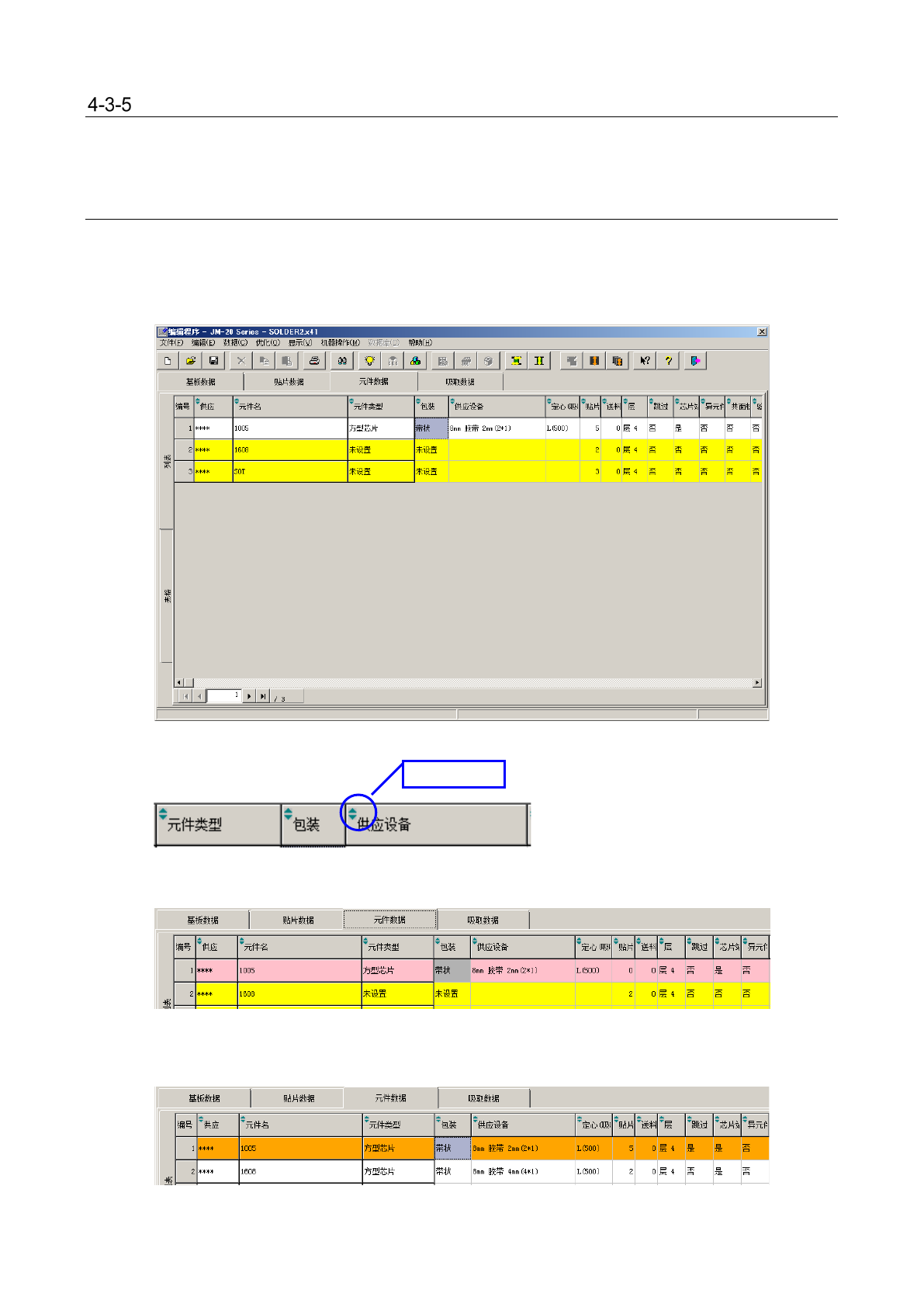 「元件数据」,是针对在「贴片数据」中输入的“元件名称”输入详细的信息数据。