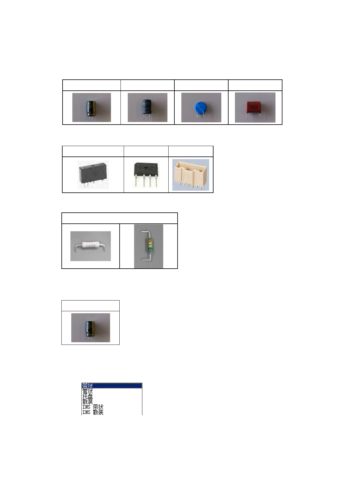 JM-20 可以对以下所示的插入元件进行贴片。插入元件指以下类型的元件,分别有引脚部分