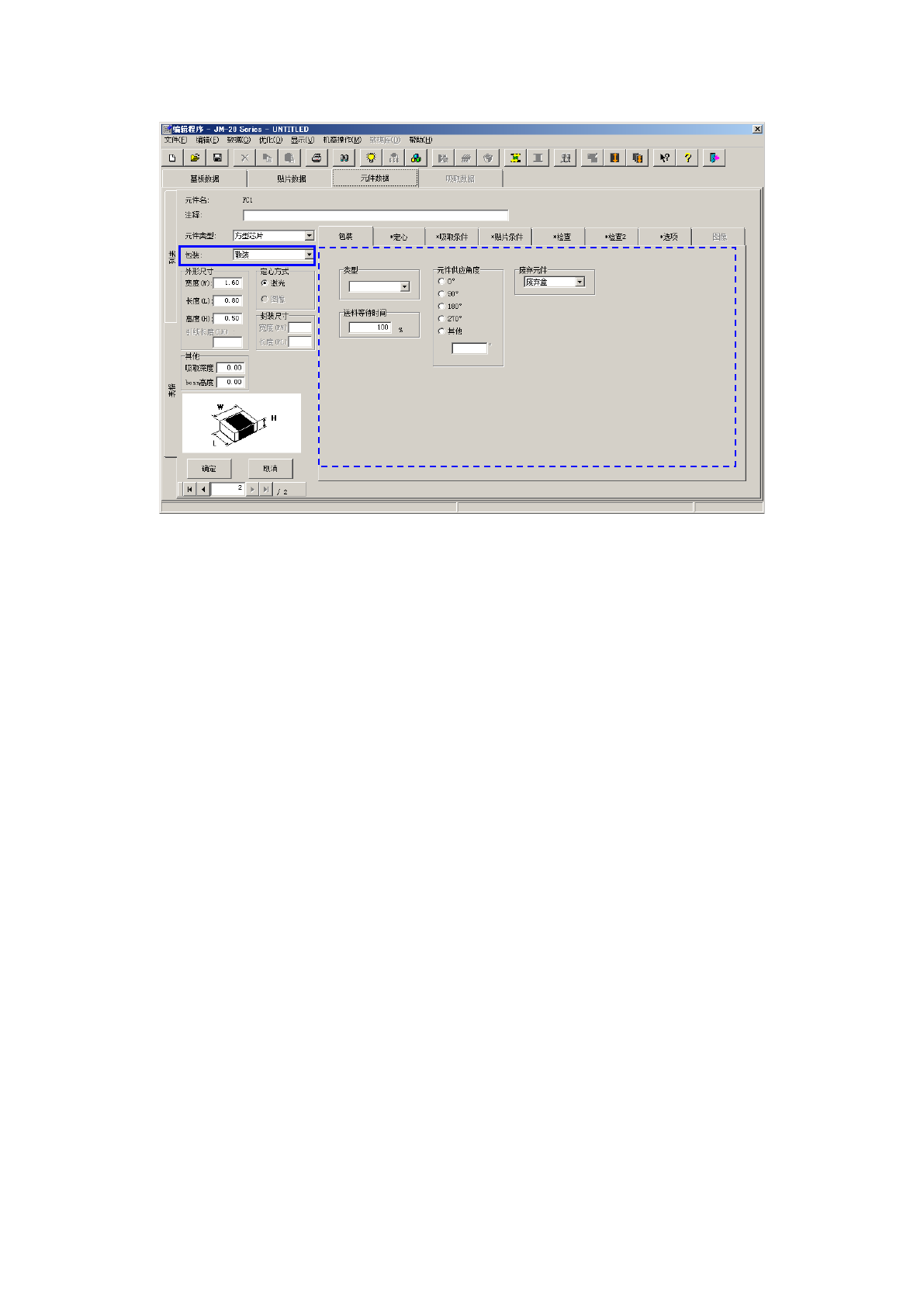 详细内容请参见「4-3-5-2-2 包装方式(1)带状的输入方法 ※ JUKI的元件供应角度定义」。