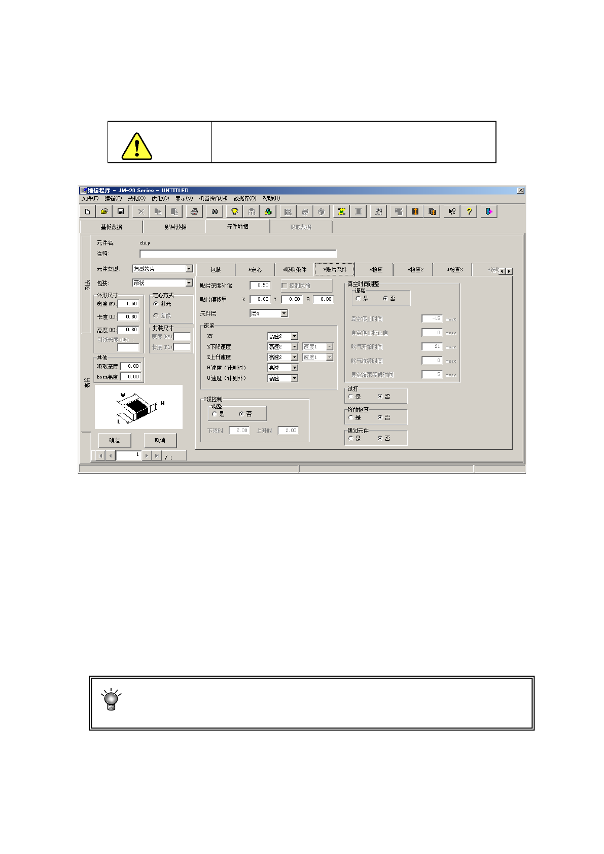 当设置为“0”时,因基板平面度不一,有时元件尚未接触基板即被贴装而造成贴片偏移,
