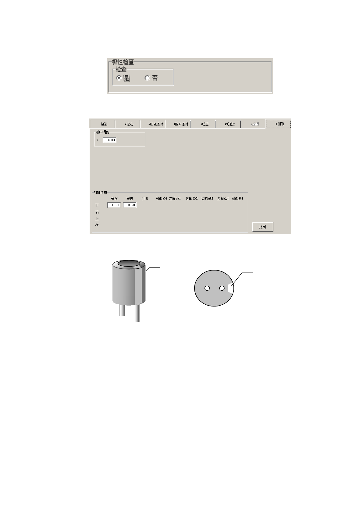 设定是否实施极性检查,从图像选项卡设定引脚间距、引脚长度・宽度。