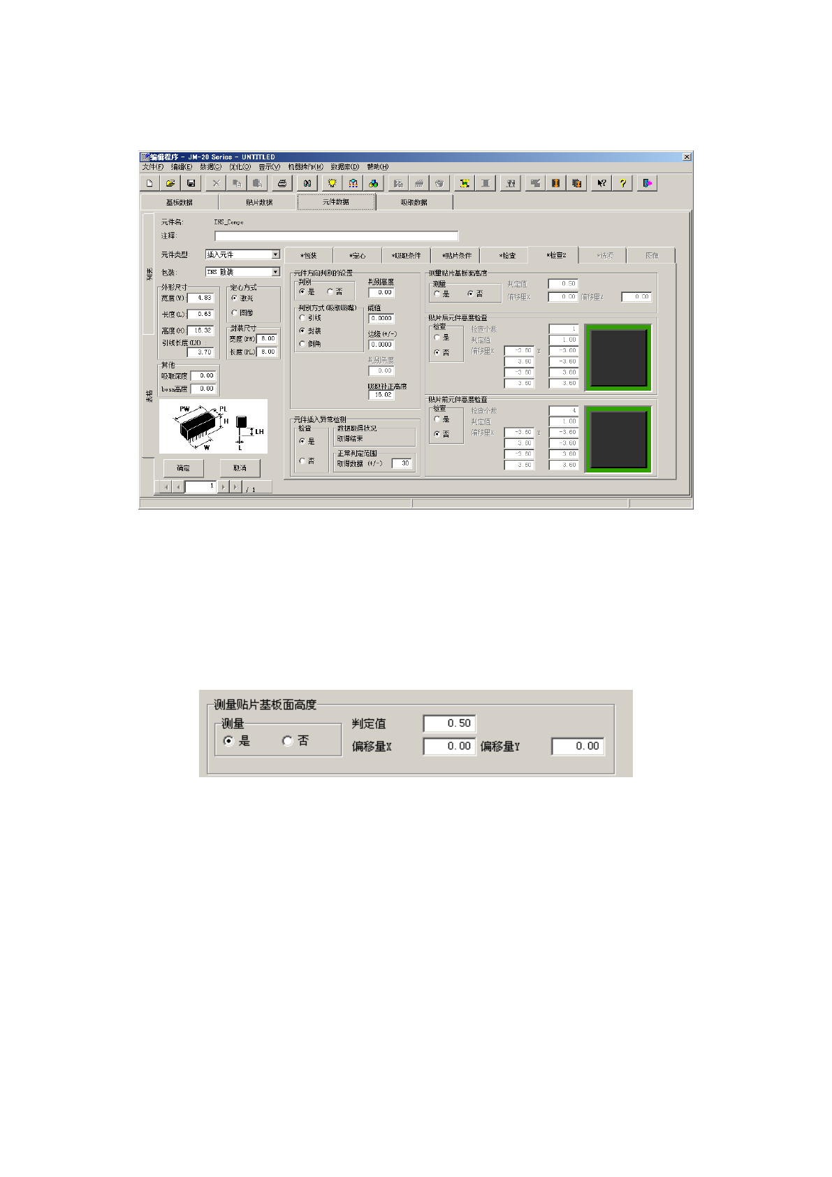 进行 “ 测量贴片基板面高度”、“贴片后元件(面)高度检查” 、“ 贴片前元件面高度检查”、“ 元件方向判
