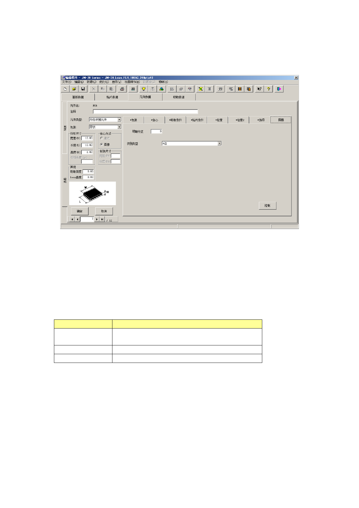 ※外形识别元件的识别条件