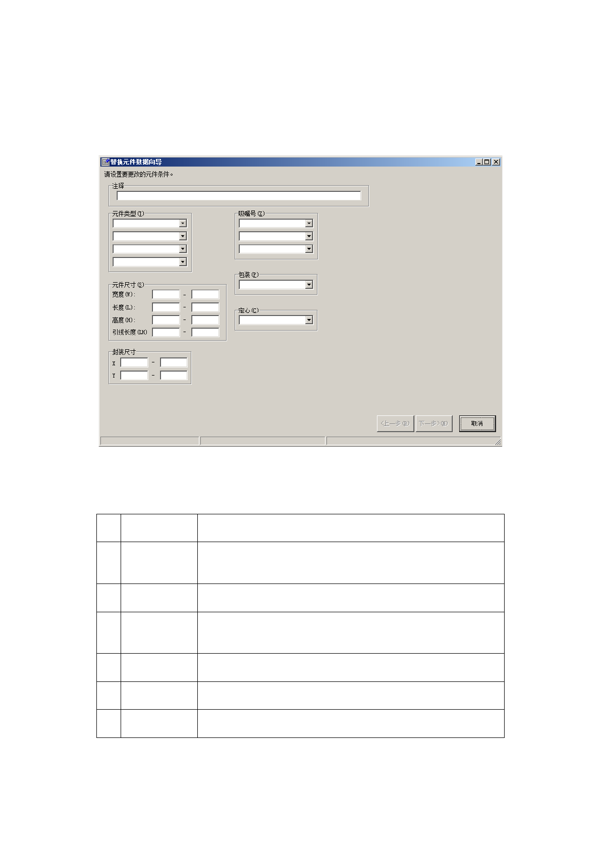 从编辑菜单中选择[替换],启动如下的「替换元件数据向导」。