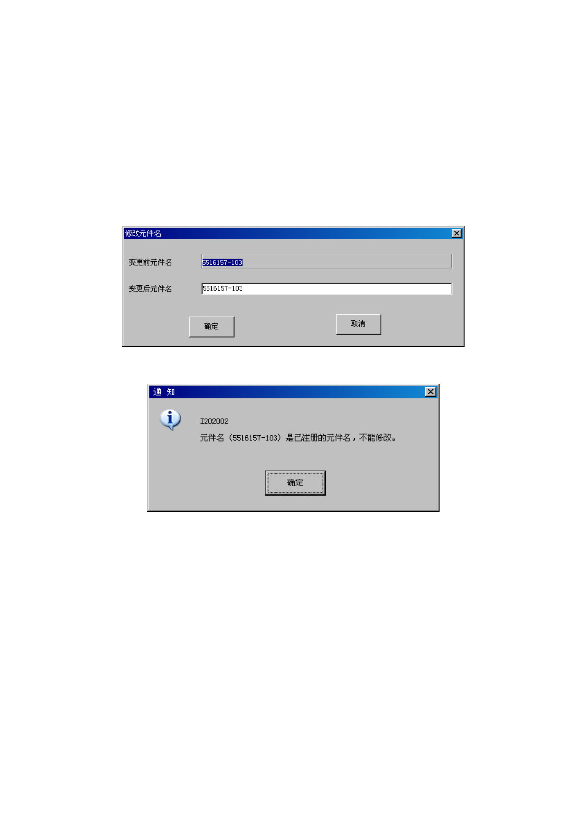 修改元件名后,元件名与其他元件名重复时,会显示如下画面。