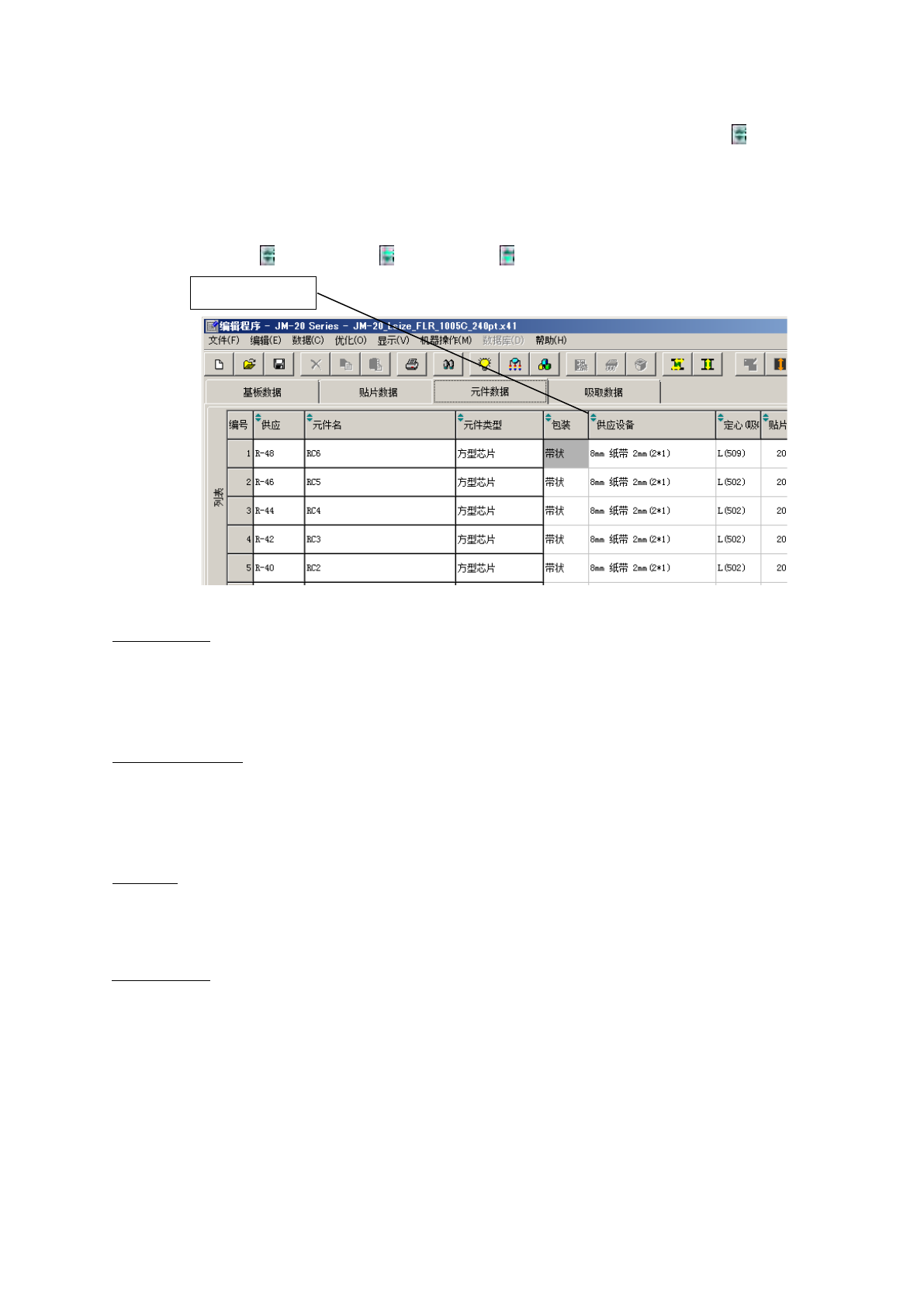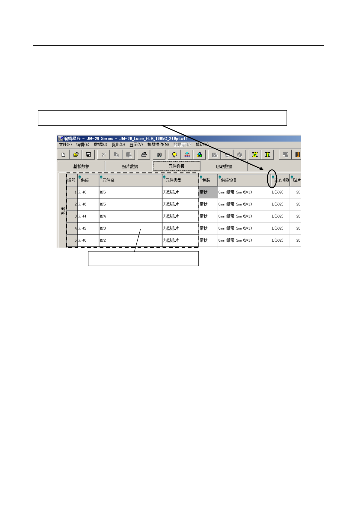 但是,在元件数据 列表画面上已标有元件名称、元件种类等的,即使画面滚动也固定显示的部分,